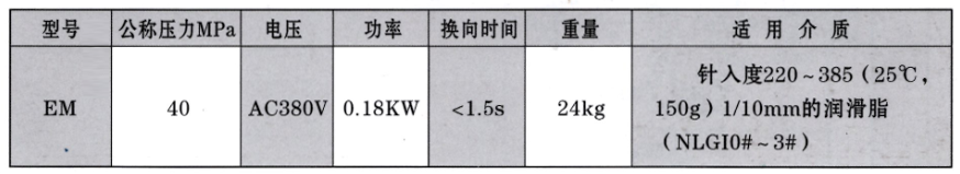 EM型电动换向阀,是一种采用微型交流电机驱动,通过蜗轮蜗杆减速带动偏心连杆机构操纵阀滑芯移动。以开闭供油管路或转换供油方向的一种集成化的换向控制机构。适用于公称压力40MPa以下的双线终端式润滑系统。