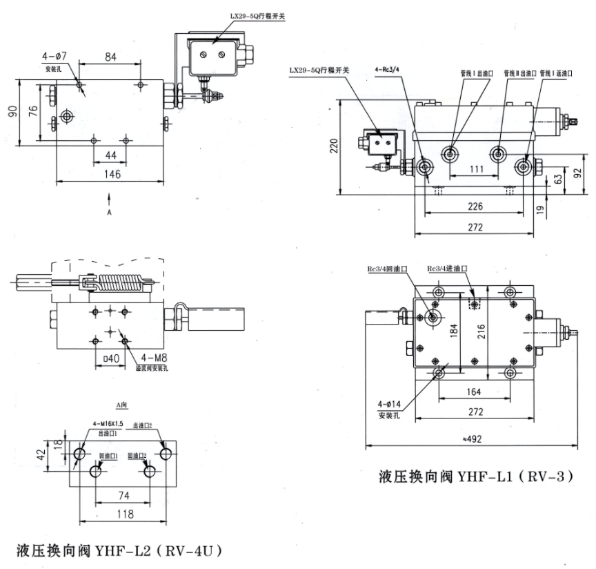 YHF-L1和YI-IF-L2液压换向阀,是一种利用齿轮、齿条加弹簧连杆机构实现液压自动换向的一种油路换向机构;YHF-L1液压换向阀可与流量大于350ml/min的电动润滑泵配套组成双线环式系统,YHF-L2液压换向阀只能与DRB-L60和DRB-L195型电动润滑泵配套使用。