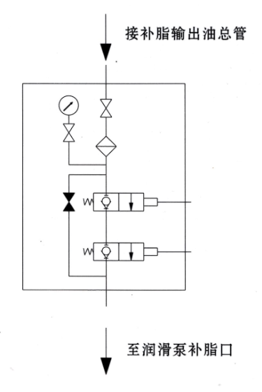 3、当两个电磁阀都损坏时,手动打开旁通阀,即可进行人工补脂。