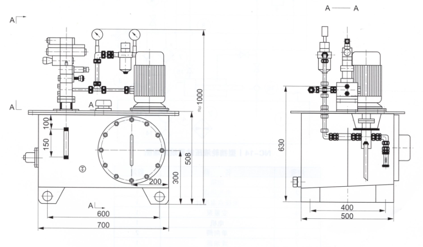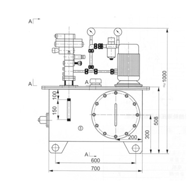 系统装有一套柱塞变量泵装置;正常工作时,系统 高压力为lOMPa, 低压力为4MPa,油缸上行速度由柱塞变量泵及调速阀来调定;油缸下行时速度由另一个调速阀来调定,油温是由装在油箱上的电接点双金属温度计来控制电加热器的开闭;系统设有一台精度为20Um的精过滤器,保障液压油的清洁;过滤器压差达到0.35MPa时报警,需及时 换过滤器滤芯。