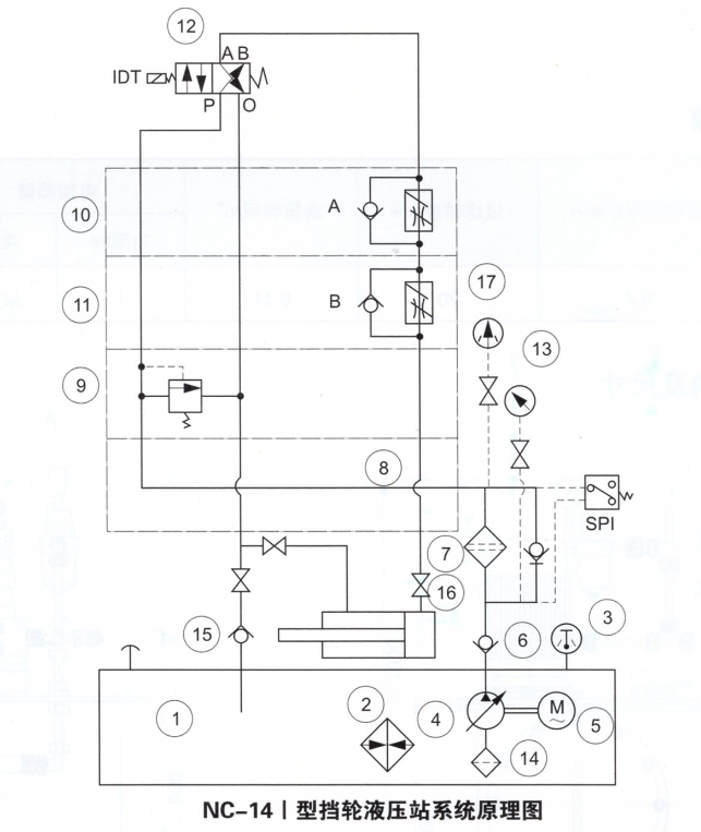 挡轮液压站是控制回转窑液压挡轮动作的动力装置,其工作原理如下图所示。