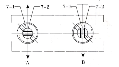 4、在分配器上下对应出油口间设有合二为一的并油通路,易改奇数出油,使用时只需将7-1先拧松然后用螺丝刀拧7-2柱销(参见上图),7-2柱销一字槽水平方向为上下分开出油;7-2柱销一字槽垂直方向为并油状态,上下出油合并,将不用的出口用Gl/4螺塞封堵。