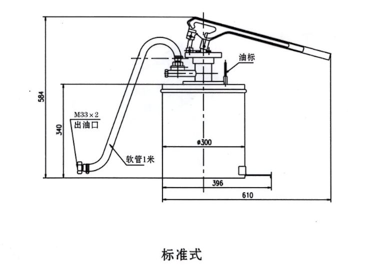 1、使用时输油胶管一端接加油泵出口,另一端接贮油器补给口,使用完毕后另一端应拧在桶盖螺栓上。