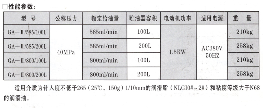GA- II型电动润滑泵及泵站装置适用于润滑点多、分布范围广、润滑给油频率高的公称压力为40MPa以下的单、双线干油或稀油集中润滑系统中,作为集中润滑供送润滑剂的输送装置。该泵是一种由减速电动机直接驱动而排出润滑剂的单出口电动润滑泵。采用双柱塞双泵缸结构,运转平稳靠谱,结构紧凑,振动小,噪音低。