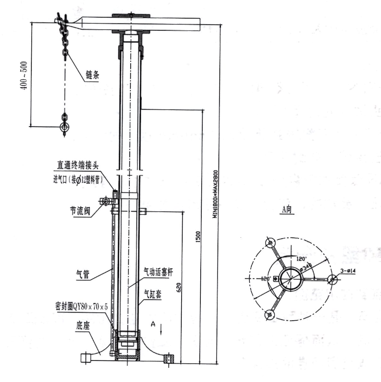 2、操作使用时.进气/排气节流阀应慢慢开启,控制进气量使气缸活塞杆上升或下降速度均衡基本稳速,以免上升或下降速度过快,对操作人员或设备造成危害。