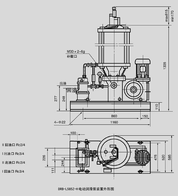 3、向贮油器内补脂使用DJB-V70型电动加油泵从润滑泵的补给口补进,使用的润滑脂应清洁,不允许夹杂有污物。