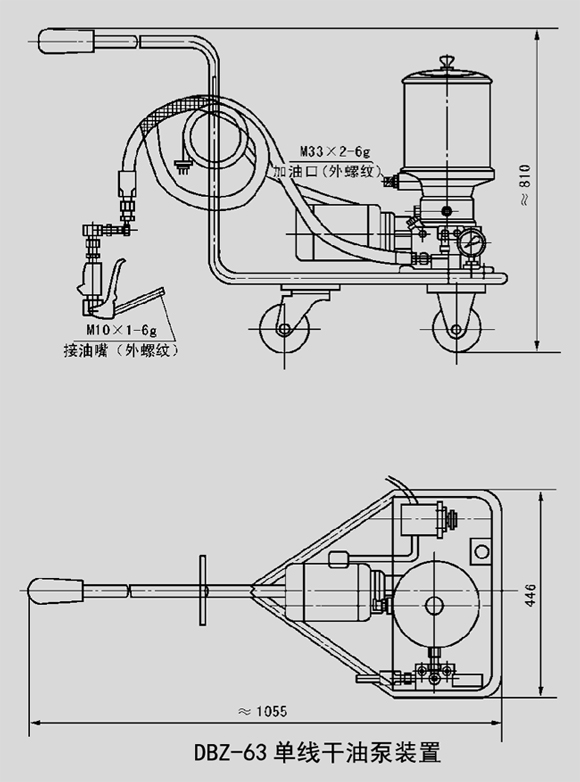 DB-63型单线干油泵适用于润滑频率较低、公称压力为10MPa、润滑点在80点以下的单线小型干油集中润滑系统中,通过片式给油器向各润滑点供送 润滑脂。