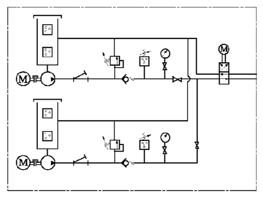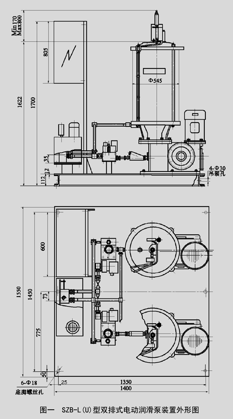 SZB-L(U)型双排式电动润滑泵装置是由两台电动润滑脂泵、换向阀、集成块及管路附件等组成。在同一底座上安 装有两台电动润滑脂泵,一台工作,一台备用,双泵可以自动切换,通过换向阀接通运转着的泵的回路,不影响系统 的正常工作。两台泵也可以同时工作。它具有压力高、流量大、远距离输脂、安全可靠等特点。贮油桶具有油位自动 报警系统。